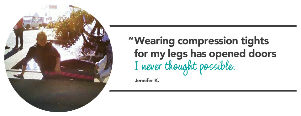 My story started at age 27 when I was pregnant with my 2nd child. At the time I had visible varicose veins and some mild pain. Fast forward 7 years and another pregnancy and unfortunately I have to wear them during all of my waking hours. I was diagnosed with venous insufficiency at the age of 31...I can still wear my compression but yet still feel like all the other Moms.