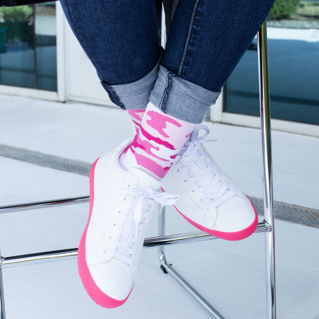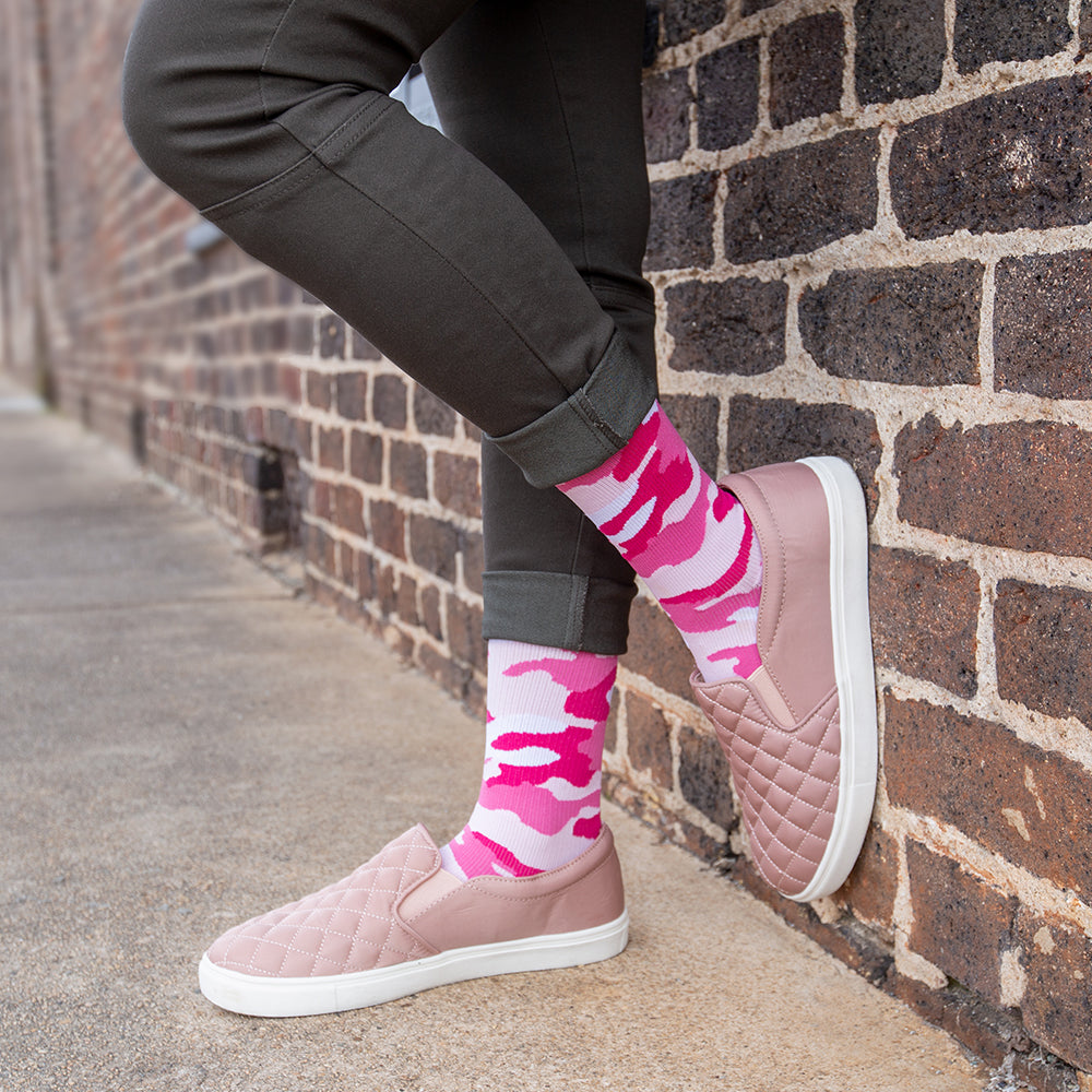 Add a little edge to your wardrobe with this timeless pattern. Whether you are styling them with a camouflage jacket or making them the focal point of your outfit, you won’t want to hide in these socks. Perfect for flight, travel, athletic recovery, spider veins, pregnancy, and more.